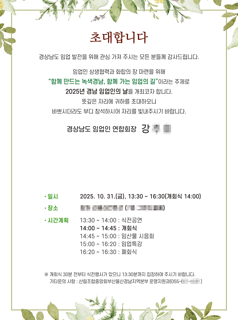 산림조합경남지역본부 초청장