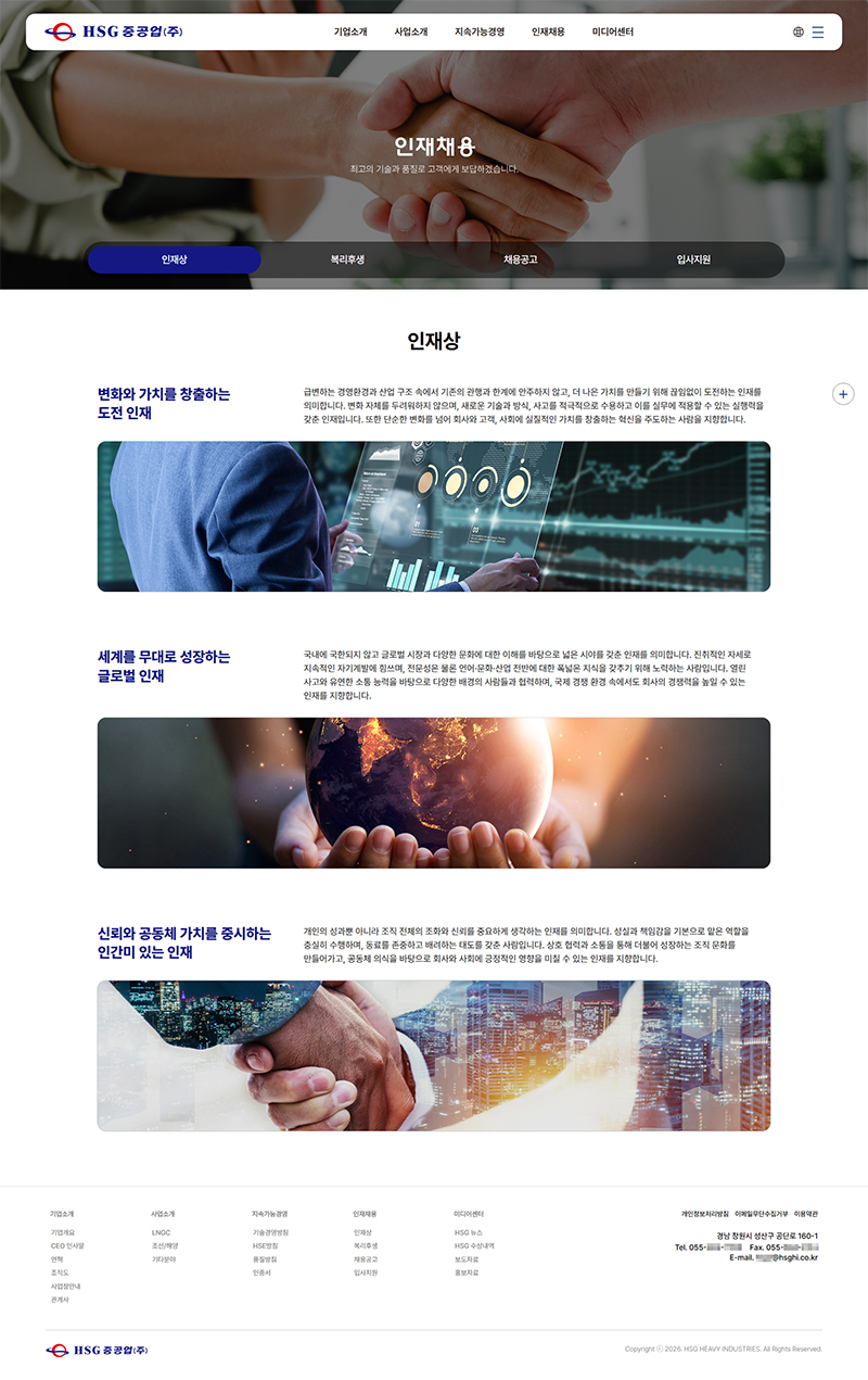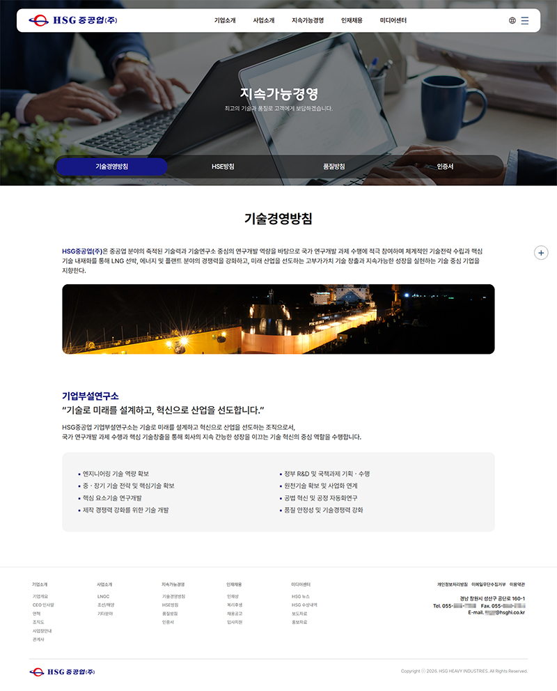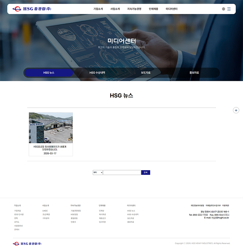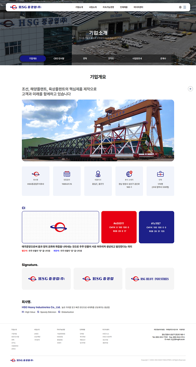 HSG중공업(주) 홈페이지 리뉴얼